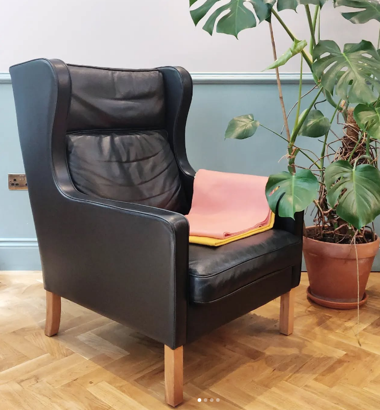 Black Leather Wing Back Chair