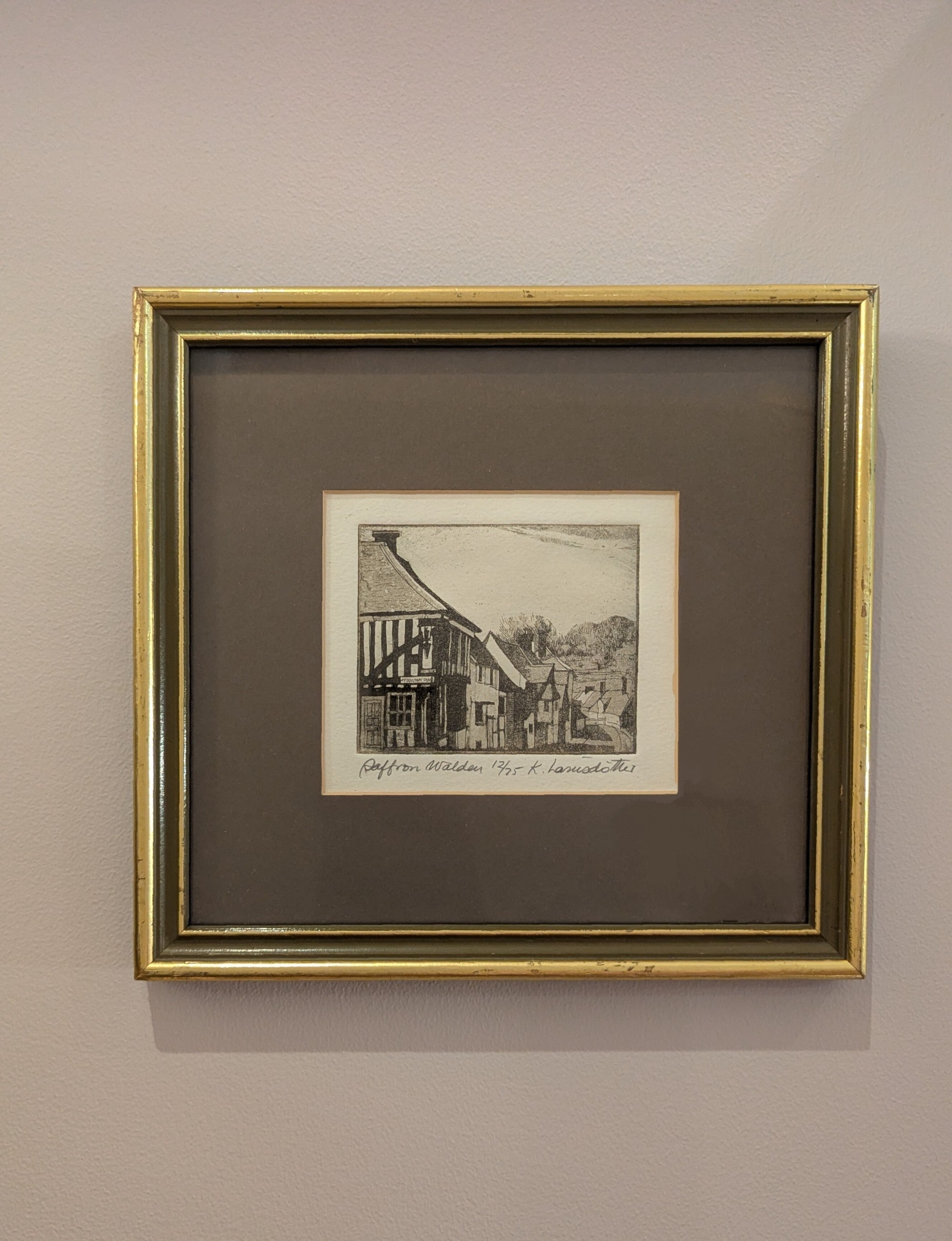Framed etching by Karolina Larusdottir of Saffron Walden, England. Numbered 12/75 and signed by the artist.