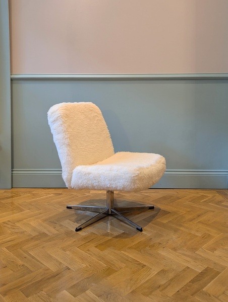 Good condition – the original base is in good working condition, with minimal signs of wear. The seat and backrest foam has been fully replaced and the chair has been newly upholstered.