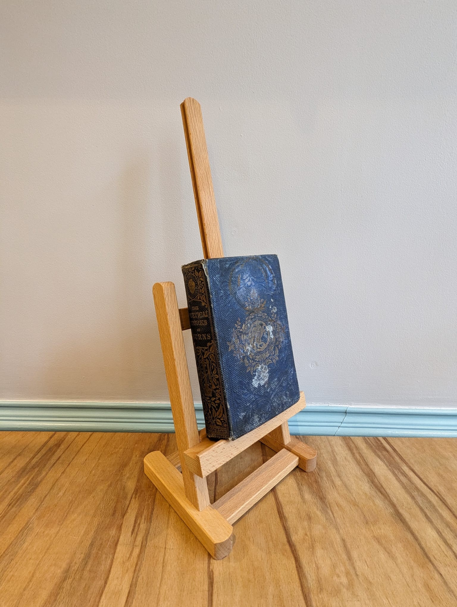 Signs of wear commensurate with age and use. There is fading to the front cover and some splits in the interior binding. There is water damage to the pages – they are still legible, but the water marks are apparent on all pages and the cover. The fore-edge is gold